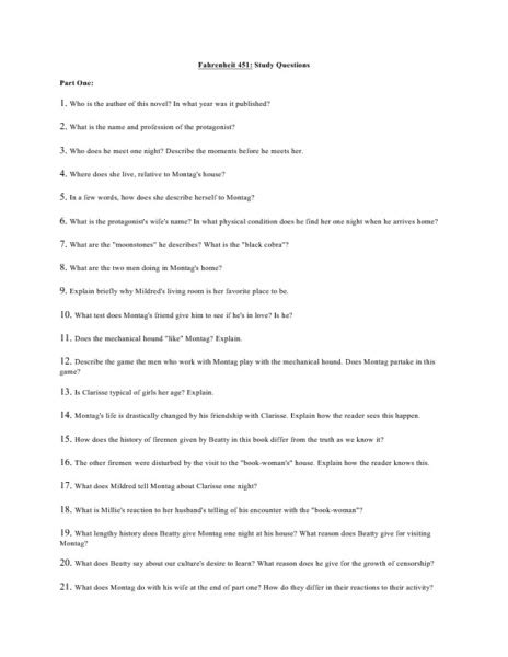 Read Online Short Answer Study Guide Questions Fahrenheit 451 Kindle Editon