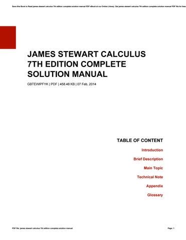 Read Online Stewart Calculus 7th Edition Solutions Manual Reader online is a convenient and frugal way to read Stewart Calculus 7th Edition Solutions Manual you love right from the comfort of your own home. Yes, there sites where you can get Reader "for free" but the ones listed below are clean from viruses and completely legal to use.
